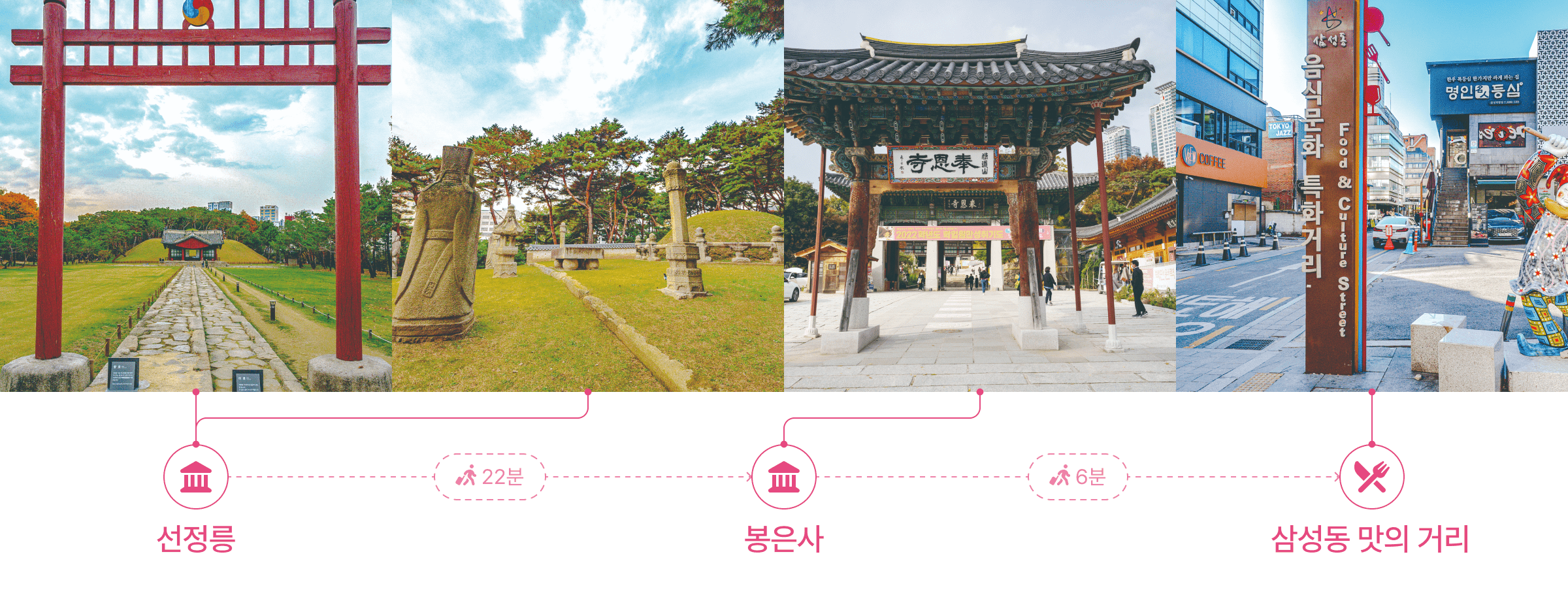 A 1.7km long course that allows you to explore historic sites filled with history and tradition, as well as delicious restaurants in Samseong-dong. After a quiet walk, let’s enjoy the bustling city life. The greater the contrast, the greater the enjoyment.