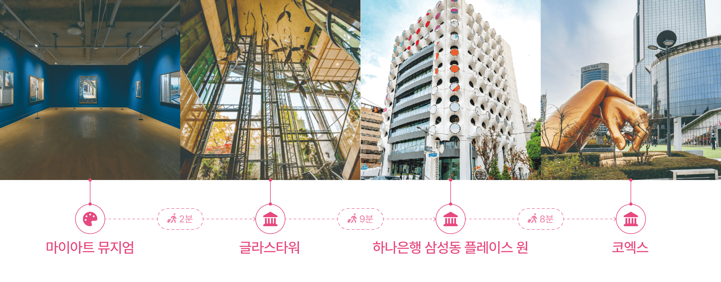 A course with a total length of 1.7km that allows you to see the modern buildings of Samseong-dong, visit galleries, and go shopping in one stop. There are many modern buildings in the Samseong-dong area, a developed business district, making it perfect for an architectural tour.