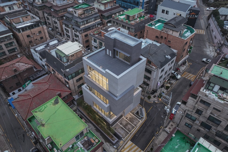The architect sought to achieve the most fundamentally stable form through a cleanly organized brick volume. Minimizing unnecessary formal gestures, the building is distilled into four floors, four masses, and four outdoor spaces. Rainwater and mechanical systems are routed inside to maintain a pure architectural form. Beyond stability, the architect wanted to offer a gift of delight.