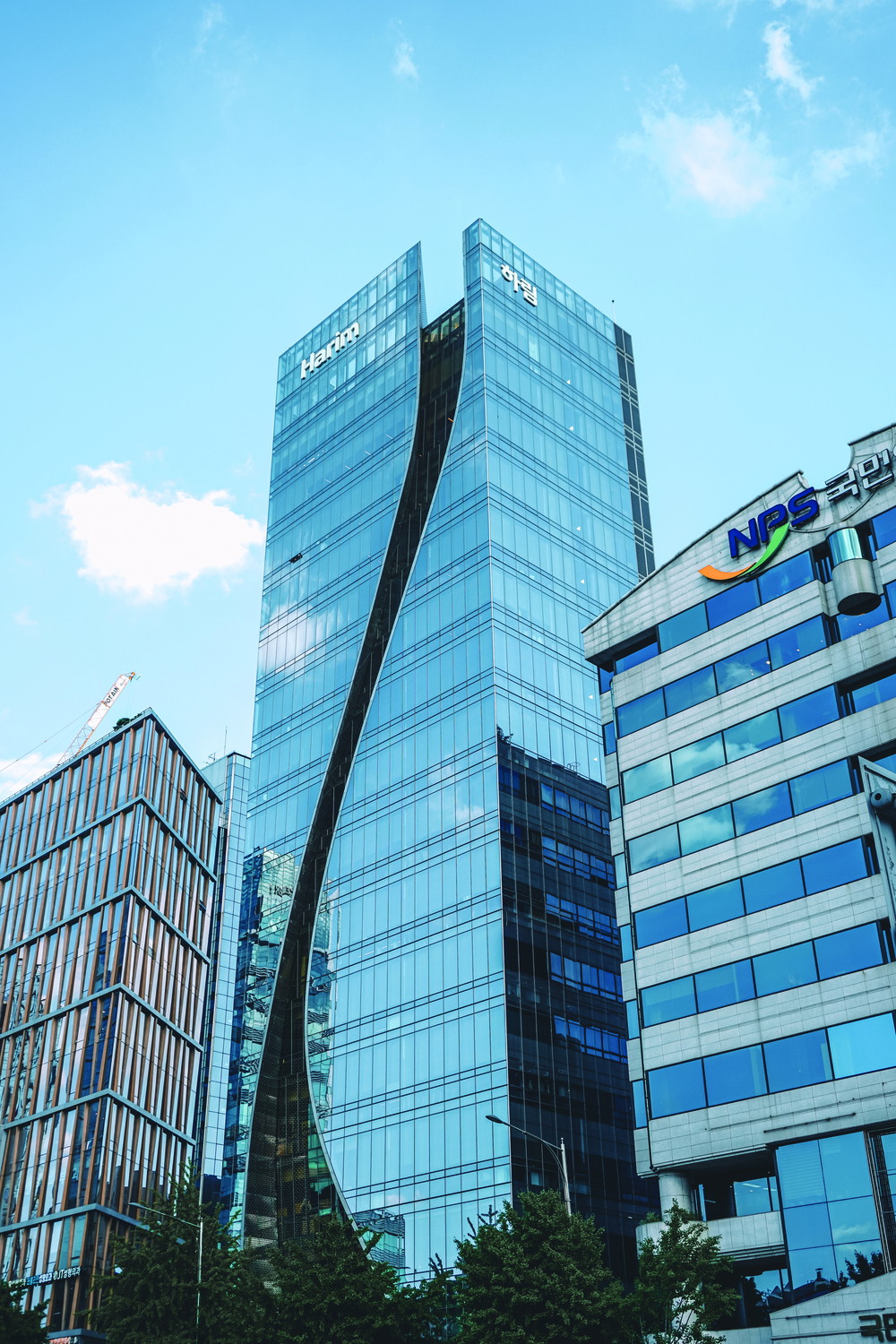 Harim Tower is a skyscraper with an S-shaped groove facade from the ground floor to the roof. A stainless steel perforated panel was installed on the inside to distinguish between the boundary and maximize the curves.