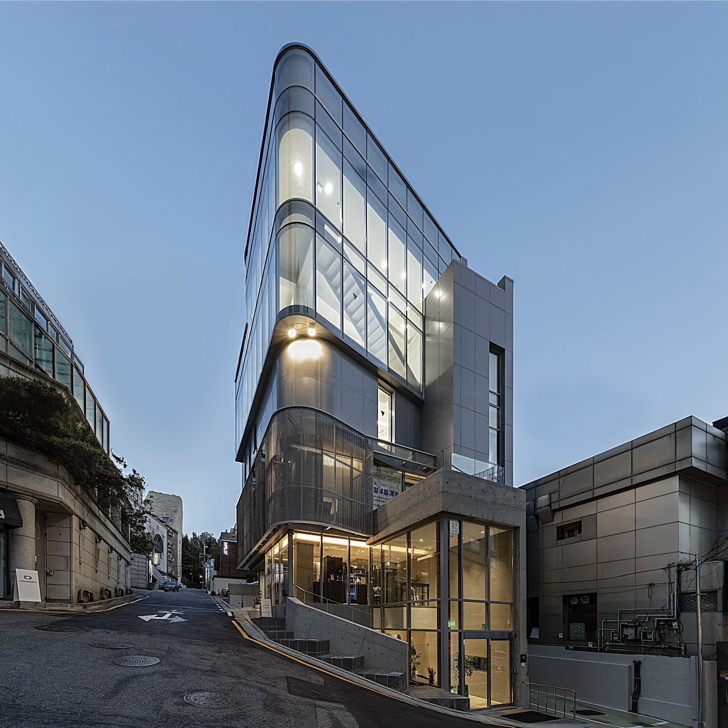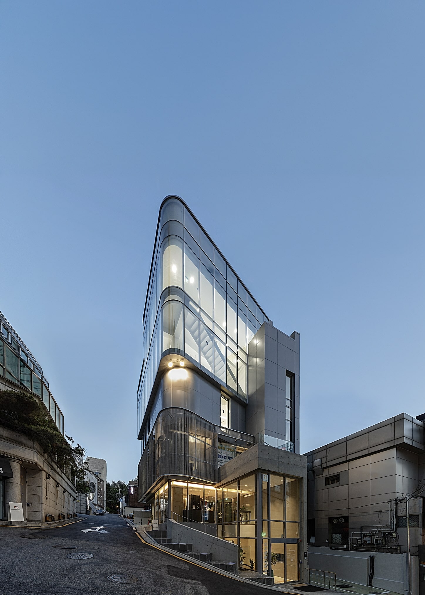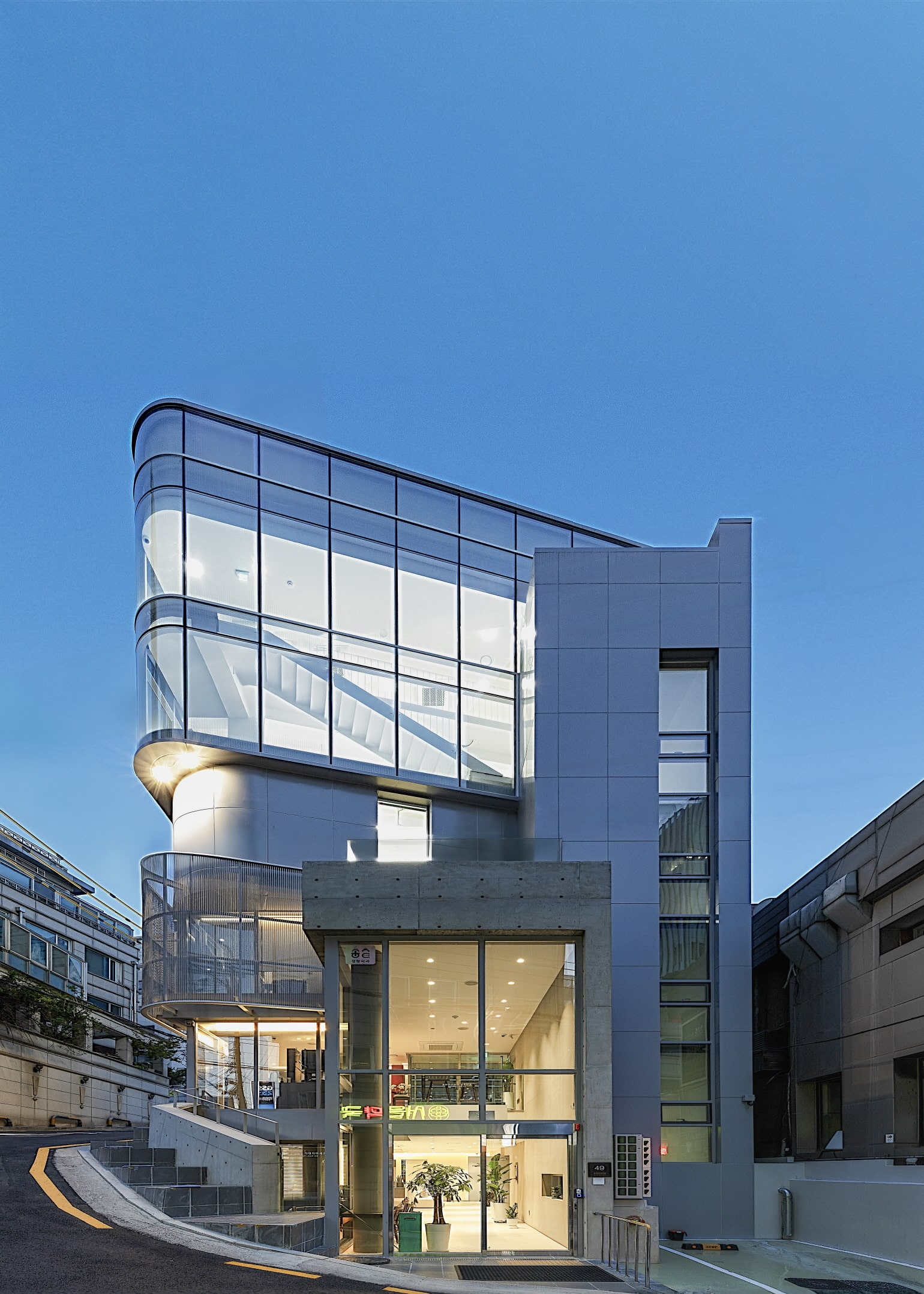 The intention was to imbue each floor, each space, and each detail with spatial transformation and diversity, allowing the building to express a sense of place beyond its function as an orthopedic clinic. Walking up the alley to the entrance, one encounters a new symbol of the place. The massing and finishes one had vaguely anticipated are confirmed, and the flow of spatial variation—compact yet richly packed—is realized. As a bonus, views open up to the Han River and beyond to Inwangsan Mountain.