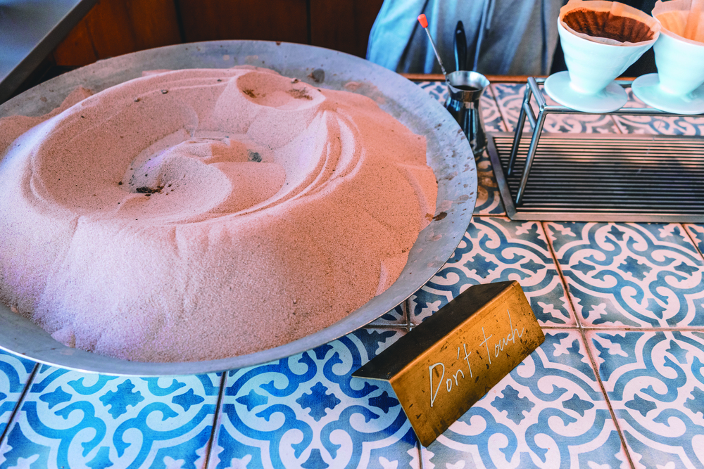 Welcome to Sand Coffee Nontanto Sinsa, where you can try Turkish-style coffee brewed over sands exceeding 300 degrees in heat and kaymak-made with clotted cream using the milk of water buffalos.