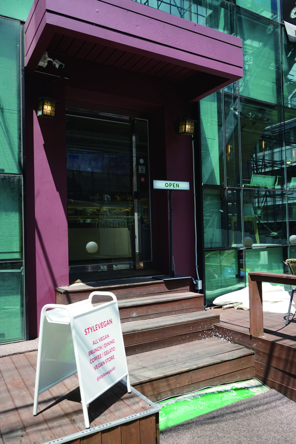 There are foods that are clearly vegetarian, such as salads, and there are also foods that make you wonder, 'Is this really vegetarian?', such as style vegan hamburgers, pizza, chicken, and milkshakes. Just by looking at the outside, it is surprising that all menu items are vegan, and when you taste it, it is almost indistinguishable from ordinary meat or dairy products, which is also surprising. We are constantly developing menu items, including vegan red bean shaved ice, and actively use Instagram to share various news about vegetarianism. A variety of vegan foods are sold on one side of the store.