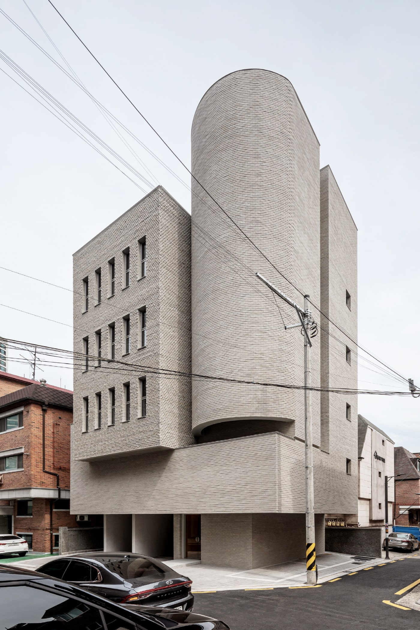 Near the site, Teheran-ro is dense with high-rise office buildings, where workers fill the streets each day. Yet just one block inward, residences of various scales are clustered together, and local residents carry on with their own daily lives. The site is positioned where these two distinct streetscapes rapidly transition into each other. The goal was to create a building with a scale and expression suited to the alley behind the massive volumes and curtain-wall facades of the boulevard.