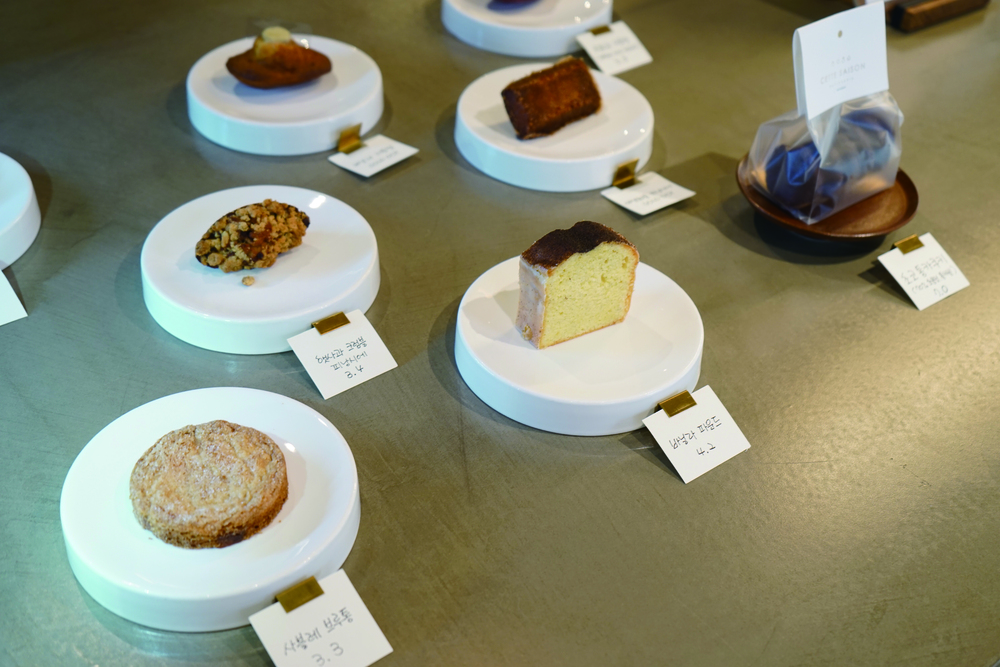 여름엔 초당옥수수, 가을엔 반건시 에클레어 등 계절마다 디저트 구성이 조금씩 바뀌지만 공들여 닦은 대리석처럼 빛나는 바닐라 타르트만은 사계절 내내 만날 수 있다. 은은한 단맛이 나는 바닐라 아몬드 크림은 바닐라의 풍미는 살리고 느끼함은 완벽하게 잡아냈다. 파트 사블레 부분은 나도 모르게 포크에 쥔 손에 힘이 들어갈 정도로 쫀쫀하다. 매장엔 6인용 테이블 하나뿐이라 먹고 가기 위해선 기다려야 할 때도 자주 있다. 대표 메뉴의 레시피를 배울 수 있는 원데이 클래스 역시 디저트만큼이나 인기가 많다.